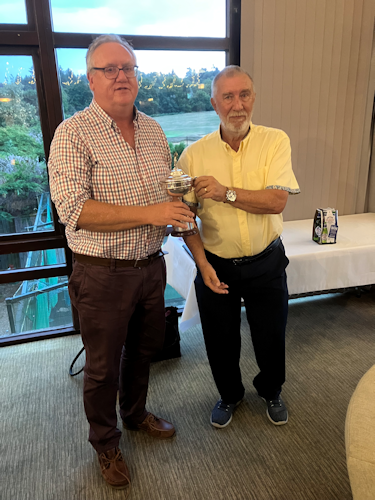 Phil receiving the winners trophy from Captain Dave.