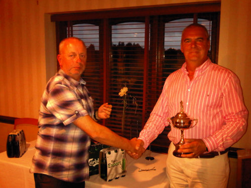 The picture shows the winner Tony Peters receiving the trophy from Bryan Carter, who is acting as Captain, otherwise Tony would have to give it to himself!